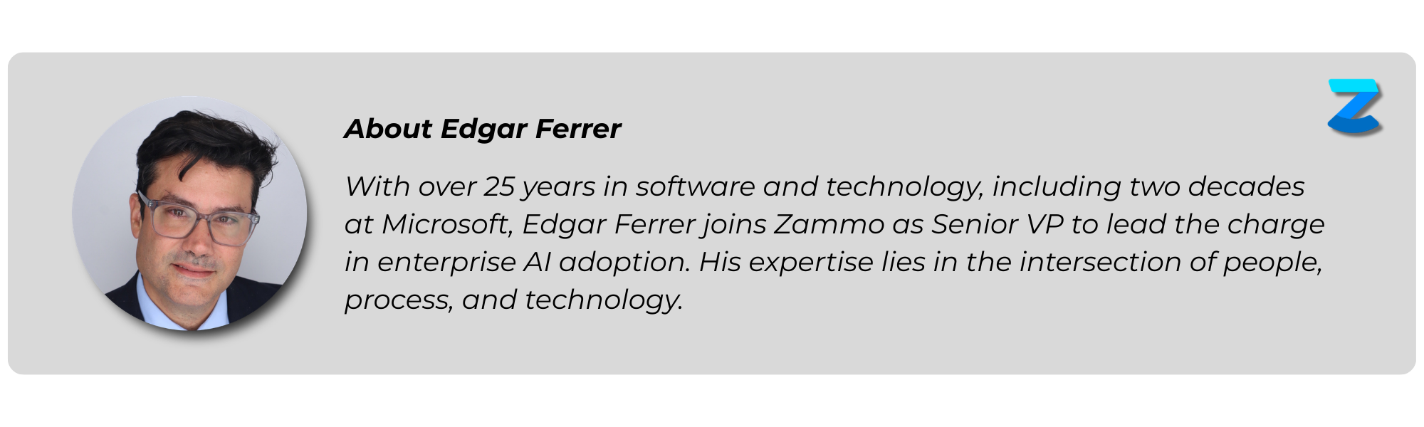 As AI continues to evolve, the goal remains the same: making adoption fast, secure, and simple. With Edgar’s leadership and Zammo’s strategic alignment with industry giants like Microsoft, where Zammo has been highlighted by CEO Satya Nadella, we are helping organizations build for a future they can feel confident in.